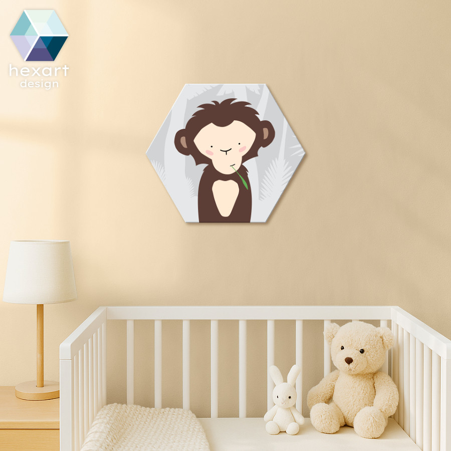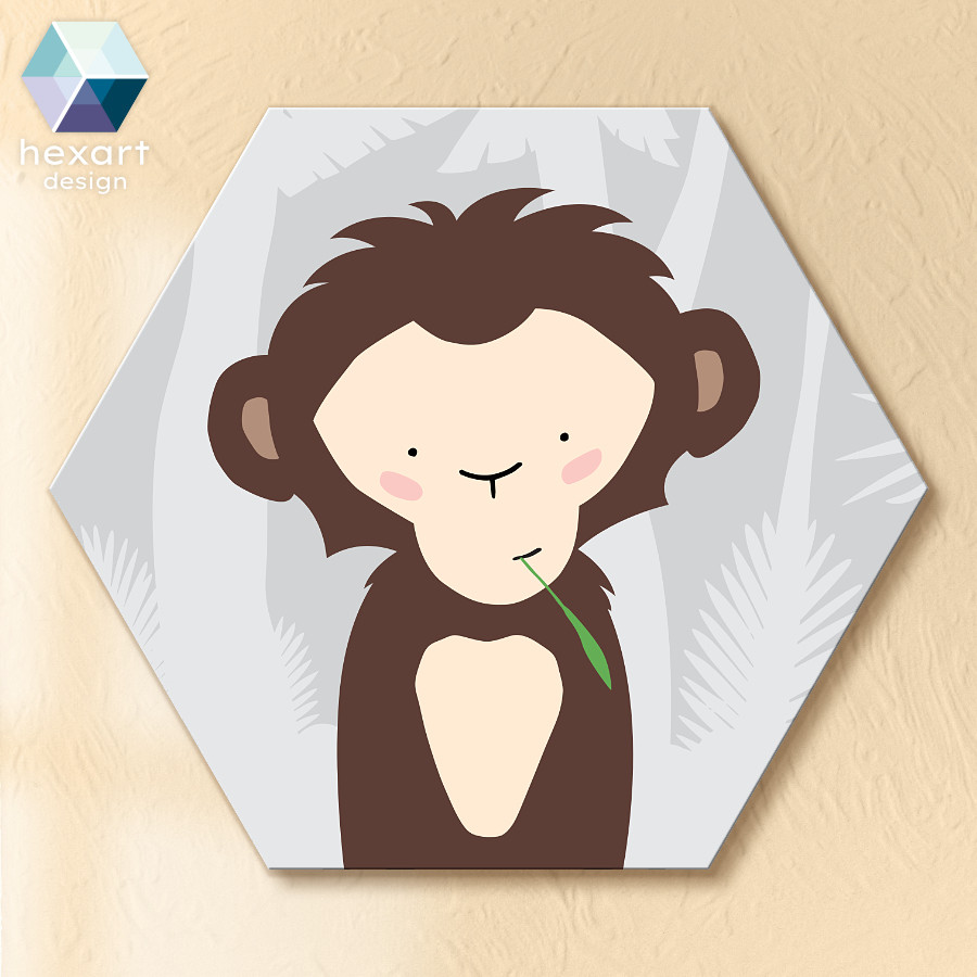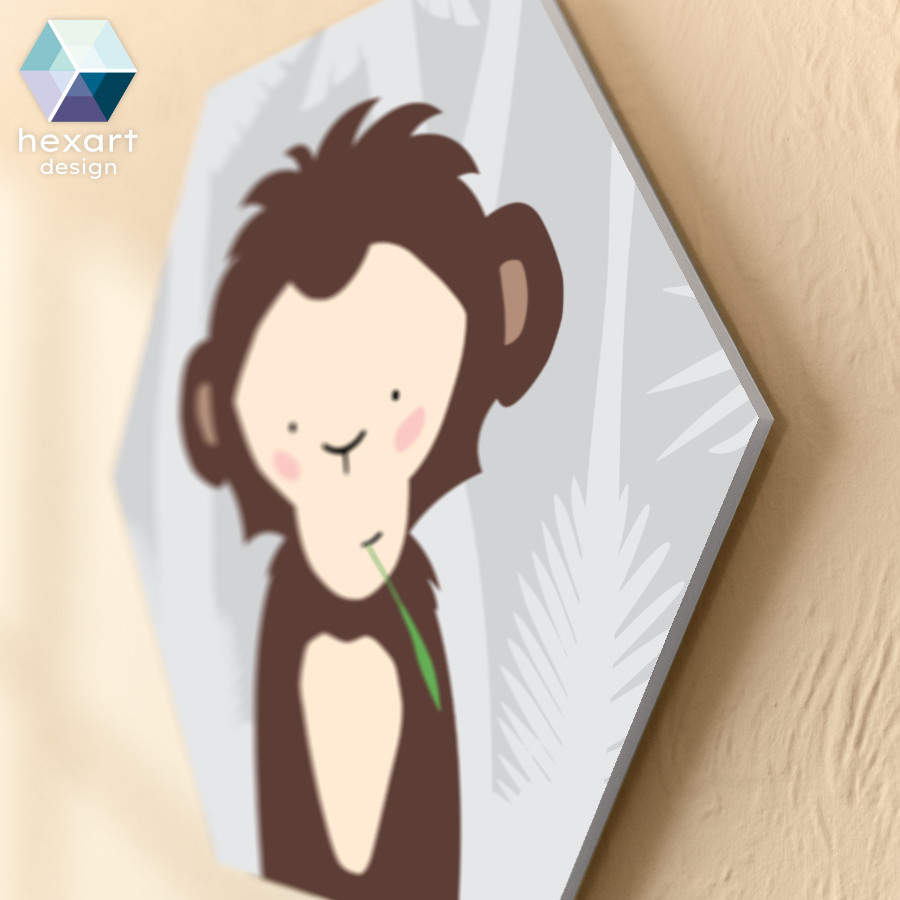 Csimpánz baba- illetve gyerekszoba falikép. Vele és társaival dekorálhatod gyermeked szobáját, meghitt és barátságos világot teremtve.